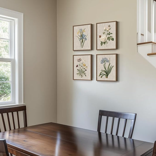 Framed Botanical Wall Art, 4 Piece Vintage Floral Canvas Painting Prints Artwork for Farmhouse Bathroom Wall Decor, Rustic Flower Butterfly Pictures for Bedroom Kitchen Hallway Home Decor, 8x10 Inch