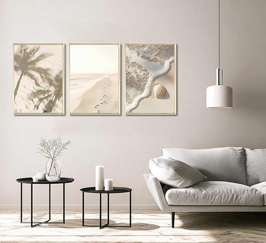 3pcs Coastal Beach Wall Art Palm Tree Seashells Painting Picture Wall Decor Seaside summer vacation Poster Print Artwork for Living Room, Bedroom, Bathroom Dorm Home Decoration