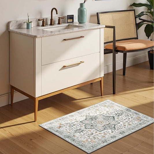 Washable 2×3 Small Area Rugs for Entryway Bathroom, Soft Kitchen Rug Non-Slip Carpet Indoor Door Mat for Floor, Grey/Brown