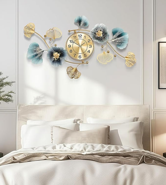 Wall Clocks for Living Room Decor,Large Wall Clock,3D Creative Metal Ginkgo Leaf Design,with Silent Movement Wall Clocks for Home Wall Decor Clock(32"x18")