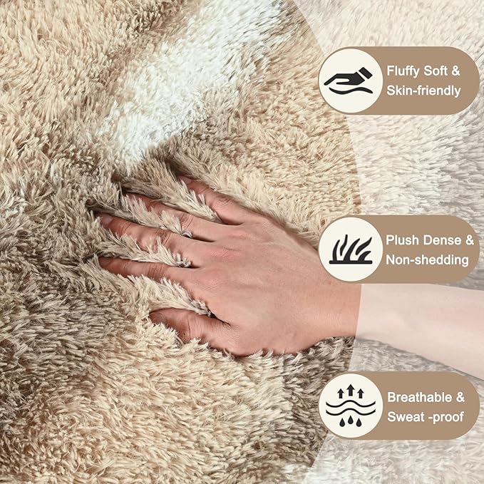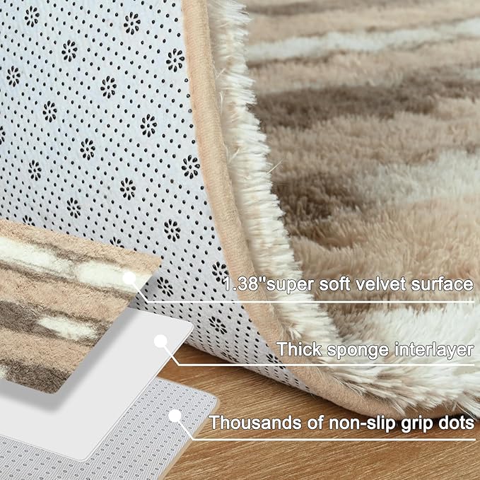 - 【 Premium Area Rugs 】Fluffy and soft rug surface is made of high-quality velvet, and the middle layer is upgraded to memory foam, making the bedroom carpet more comfortable and soft. And our fuzzy rugs with premium materials are suitable for kids and pets to play on